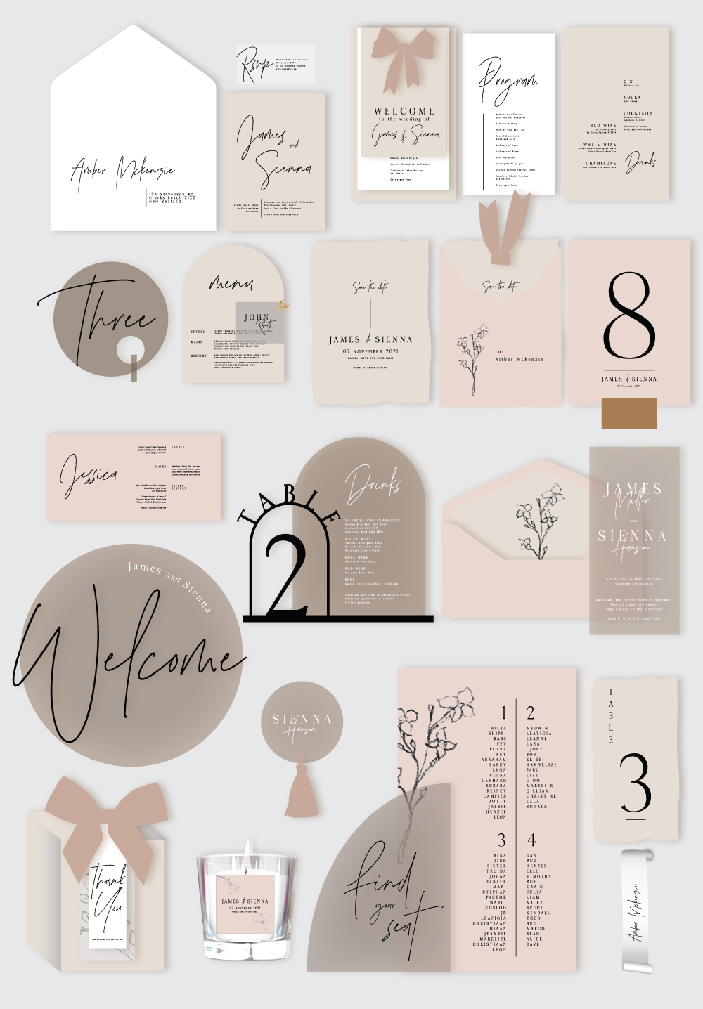 - Gift favour: A small scented candle with a matching gift favour box and gift tag with ribbon
