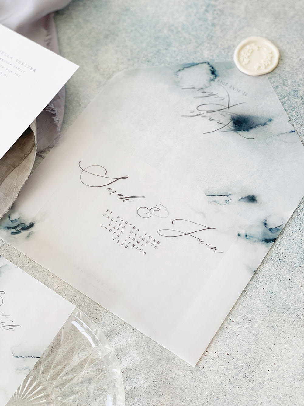 An ocean inspired whimsical invitation best suited to a beach or destination celebration.